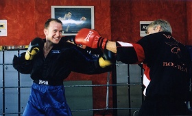 Duelle als Profi – Boxer hinter ihm.